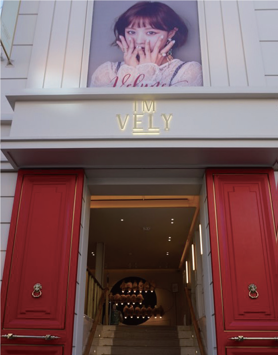 从女装购物中心开始的IM VELY是在SNS上人气爆棚后进军美妆事业的美妆&时尚品牌。IM VELY的代表理事Im Jihyeon是时装和美妆界的影响者(在SNS上拥有数十万阅读者的名人),在二三十岁女性的时装与美妆上发挥着很大的影响。以她的品位和眼光打造的品牌就是IM VELY。位于弘大的IM VELY旗舰店是一处人潮拥挤的美妆热门场所。1楼是化妆品品牌VELYVELY,2楼是时装品牌IMVELY MADE,3楼是生活用品品牌VELY HOME的产品。4楼和5楼运营着名为“u all”的漂亮咖啡厅。整个空间到处都是充满感性的装修和漂亮的美妆产品。