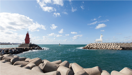 如果你是一个无比热爱大海的人,在飞机上眺望济州岛美丽的大海,心情就会无比激动,一下飞机就想直冲海边的话,推荐去离济州机场最近的“梨湖泰乌海边”。广阔的视野和柔软的黑色细沙将会给你留下深刻的印象,这里的海水较浅,沙子也漂亮,非常适合和孩子们一起享受海水浴。在海水浴场的右侧可以看到被称为梨湖泰乌海边名品的矮马灯塔。可爱的矮马形状的红色和白色灯塔与济州岛蓝色的大海非常协调,形成一幅美丽的风景画。一定要记得以灯塔为背景拍照哦!虽然白天的梨湖泰乌海边已经够漂亮了,但这里迷人的夜景却更加有名。矮马灯塔上方闪烁的灯光和沿着防波堤设置的形形色色的照明相互交融,把如此美丽的夜景装载到你的相机里吧。