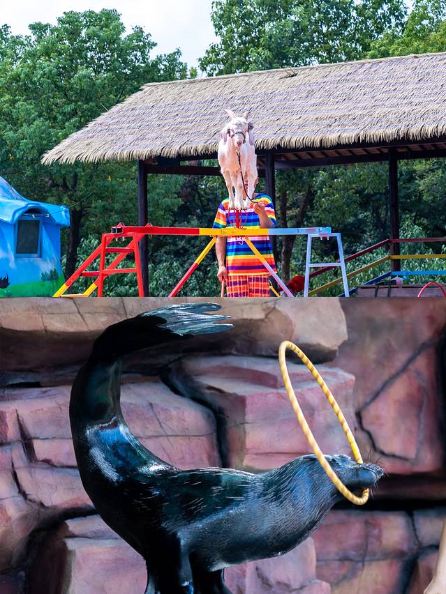小狗杂技、猴子大闹天宫、山羊过独木桩、小跳水、海狮表演,每个小动物都身怀绝技,拥有让你为之赞叹的本领,还可以和海狮合影,拥有和小海狮的亲密合照哦