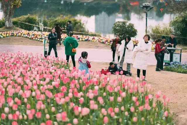 我们去到的那天正值周末,许多年轻的父母带着小宝贝到岛上花海打卡拍照。上百个品种的鲜花,郁金香汇聚成惊艳美丽的花海,微风阵阵袭来,令人心神荡漾,沉醉不已。