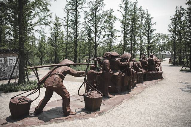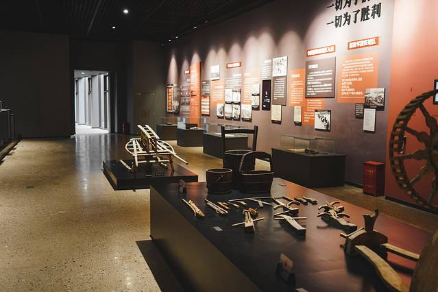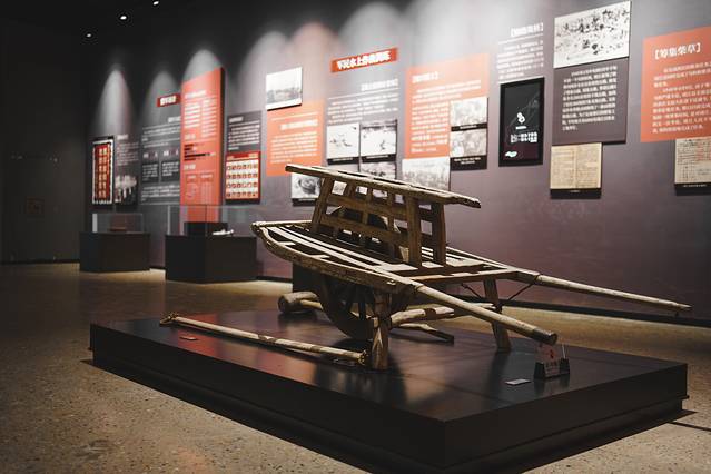 支前群众雕塑群刻画了推独轮车运送草料的民工,挑担的农民,造船、补船的船工,做饭的妇女和修筑道路的民工等,栩栩如生地还原场景化的历史现场。