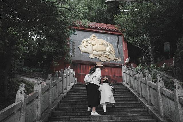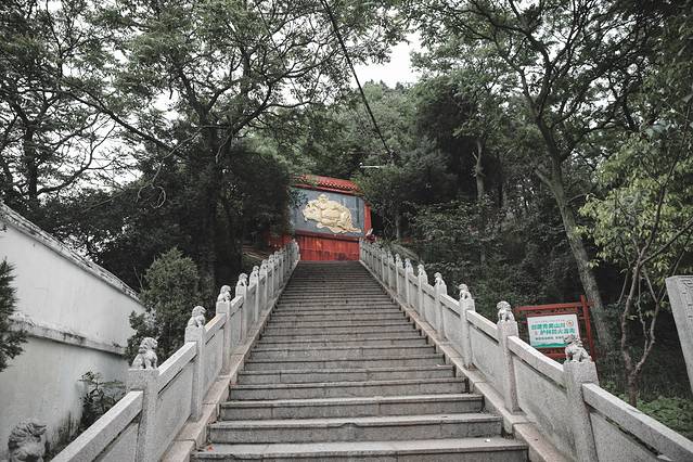 山上古木葱茏,大树林立,梵音渺渺,一派静谧清幽。