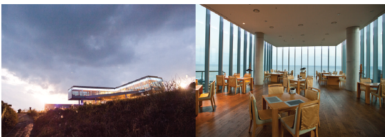 “Glass House”位于涉地可支景区,外观设计独特、新颖,更因临靠大海而拥有特别的景致。这座Glass House由日本建筑大师“安藤忠雄(Ando Tadao)”设计建造,二层的MINT餐厅墙面全部使用大幅落地玻璃窗,推门走进去就能看到涉地可支与大海景色。Glass House建筑平面呈V字形,一层是泰迪熊咖啡馆,二层为MINT餐厅。在特别的日子里,想要与恋人留下一份浪漫回忆的游客可以去逛逛Glass House。