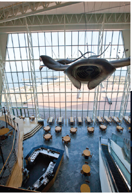 “Aqua Planet”号称是亚洲规模最大的综合性海洋馆,拥有种类丰富的海洋生物。海洋馆的巨大水幕让人仿佛置身于海底神秘世界,各种奇形怪状的海洋生物成群结队地从眼前游过。除此以外,海洋馆还为游客准备了水上芭蕾、海豚和企鹅表演以及济州海女表演等特别演出活动,精彩不容错过。地下1层的美食角设有大幅玻璃窗,透过窗户就能远眺城山日出峰的美景。