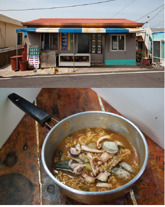 PRICE 海鲜拉面[해물라면] 5,000韩元, 烫大章鱼片[문어숙회] 15,000韩元(小份),