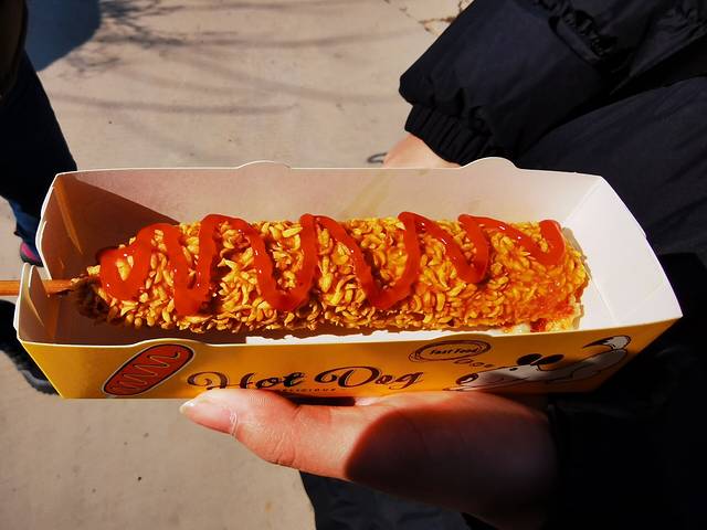 这里既有传统美食,也有现代小吃,这个芝士热狗🌭,既有好看的外表,也有美味的内涵,口干酥脆糯软,既甜又香,价格15元,非常不错。