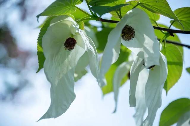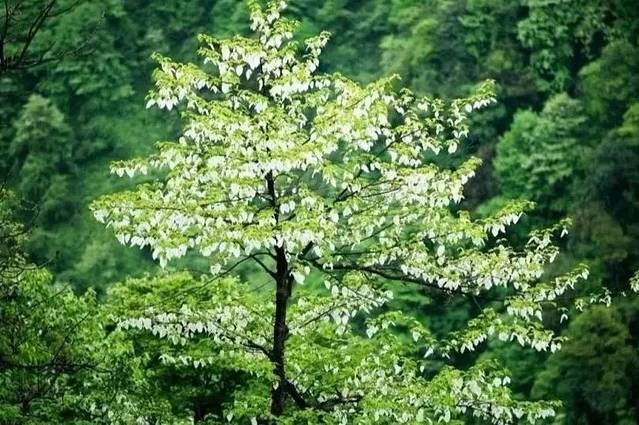 珙桐作为世界著名的观赏植物,有“中国鸽子树”的美称。珙桐树形高大挺拔,叶色翠绿欲滴,美而不娇。繁花盛开时节,就像一群白鸽栖息于绿荫丛中,寓意“和平友好”。
