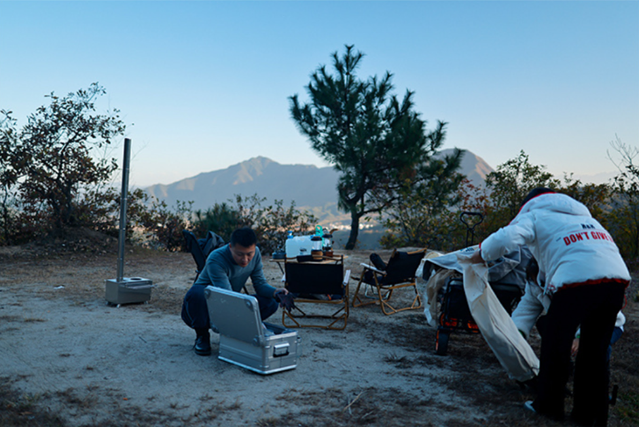 我们没有选择在村里休息,而是来到后山山上露营,看看夕阳,期待一场日出。离开查济村,驱车30分钟来到山上,找了一个平坦的地方,开始搭建露营的帐篷。在这山川草木之间,我们的帐篷也成了风景里的风景,我们也成了风景里的人物。
