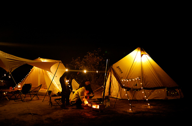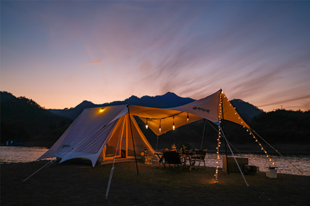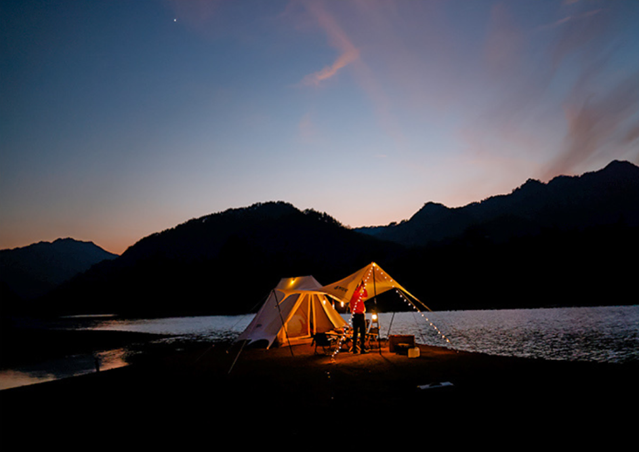 看着夕阳缓缓落下,我们的帐篷营地也搭建好了,这款喜马拉雅的蒙古包,搭配天幕一起,真的是美极了。点亮氛围灯,望着山脚下的查济村,祥和、安静、美好。做了一些我们自带的美味,美美的睡上一觉,期待日出的到来。