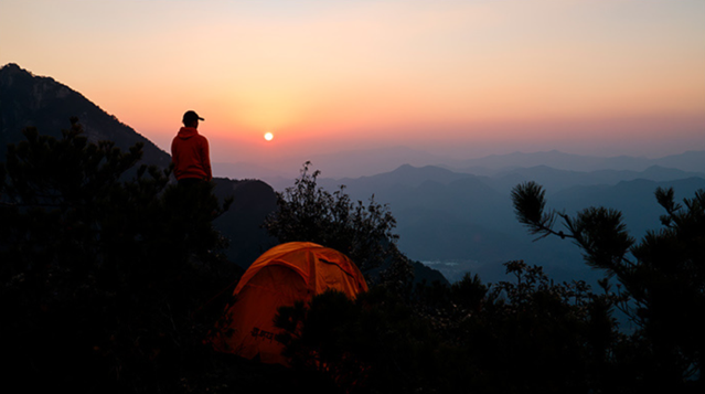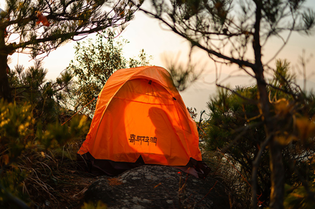 搭建我们的营地,然后静静瞧着夕阳落下。夜晚的山里还是有点冷的,我们煮了一些吃的,一边聊天,一面吃着美味,望着天上一眨一眨的星星,这一刻我们就是天地的唯一。