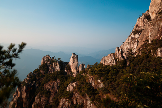 黄山归来不看岳,黄山的奇绝令五岳失色。黄山的山多险绝秀美,我们此次爬的豺狗狼尖就是其中最具特色的一片山,这里奇峰险峻,峰峰相扣,座座相拥,沟壑纵横。远看,山峦起伏恰似狗牙。又因此山豺狼野狗出没,本地山民都难行走的山道,而由此得名“豺狗狼尖”。