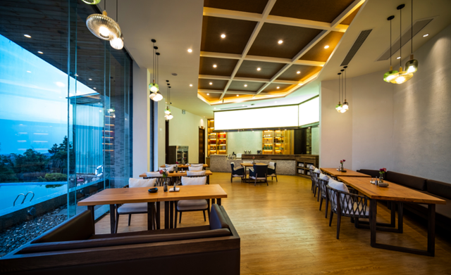 酒店拥有一个无边泳池,站在泳池边,就算不下水都能拍出大片,要是夏天来这里,还可以享受另一种情调。