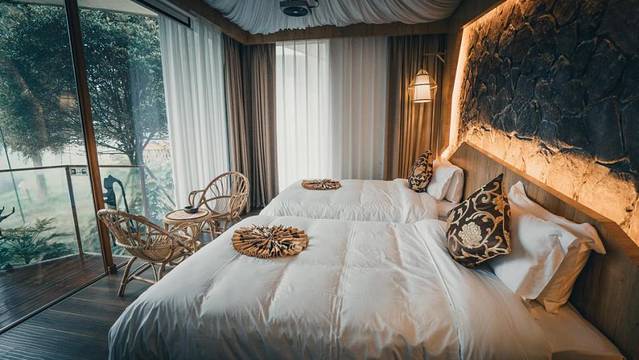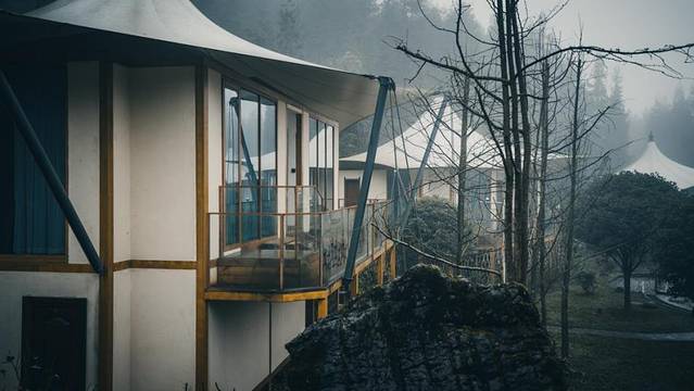 酒店共有建筑7栋,帐篷式建筑7栋,共有18个房间26个床位,由于酒店位于山林之中,环境和私密性都很好,不论是情侣度假还是亲子游玩,都特别适合。
