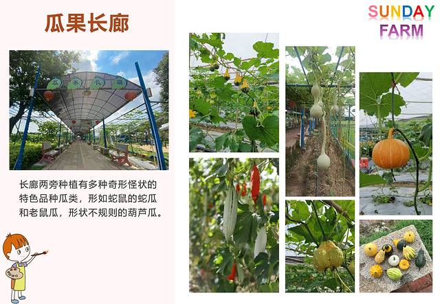 长廊两旁种植多种奇形怪状的特色品种瓜类