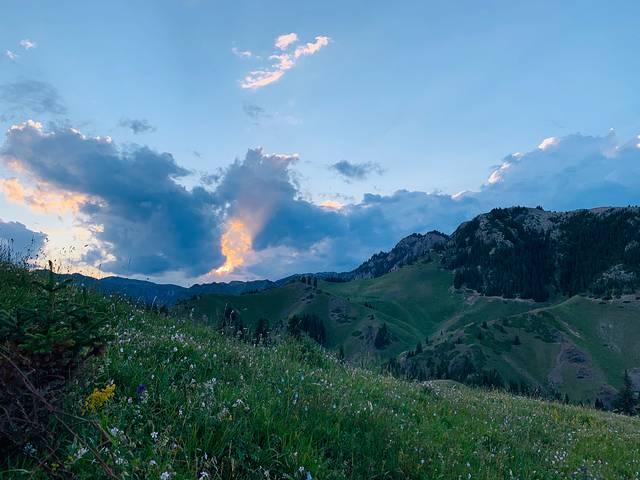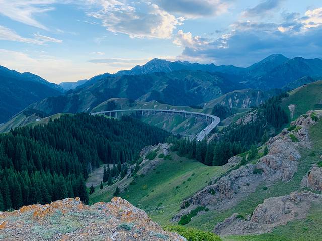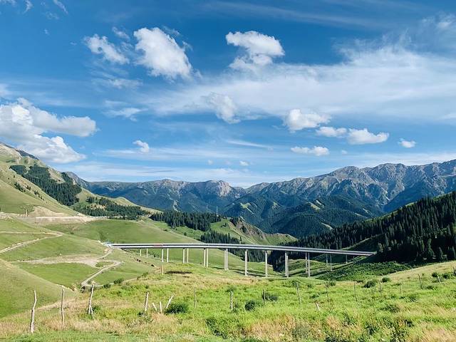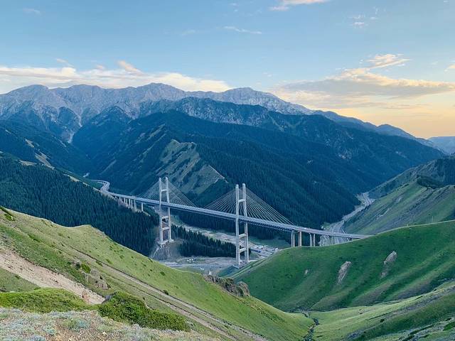 住宿的蒙古包走个山包就能看见果子沟大桥、景色很美。可以欣赏个夕阳