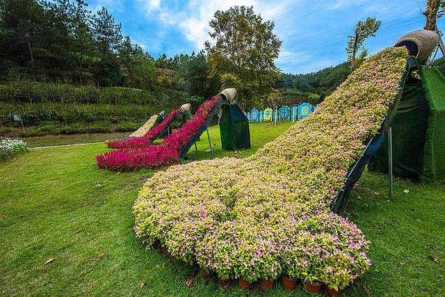进入花千谷,各色花朵争奇斗艳,置身于内,立刻就被花海的浪漫包围,让人眼花缭乱。