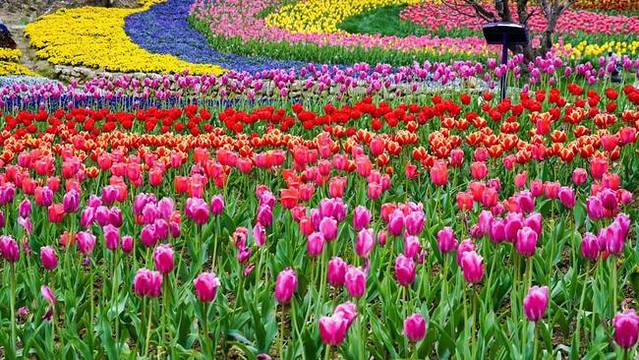 微风吹过,阵阵花香,千姿百态的郁金香摇曳一曲春天的芭蕾,目之所及,尽是美景。
