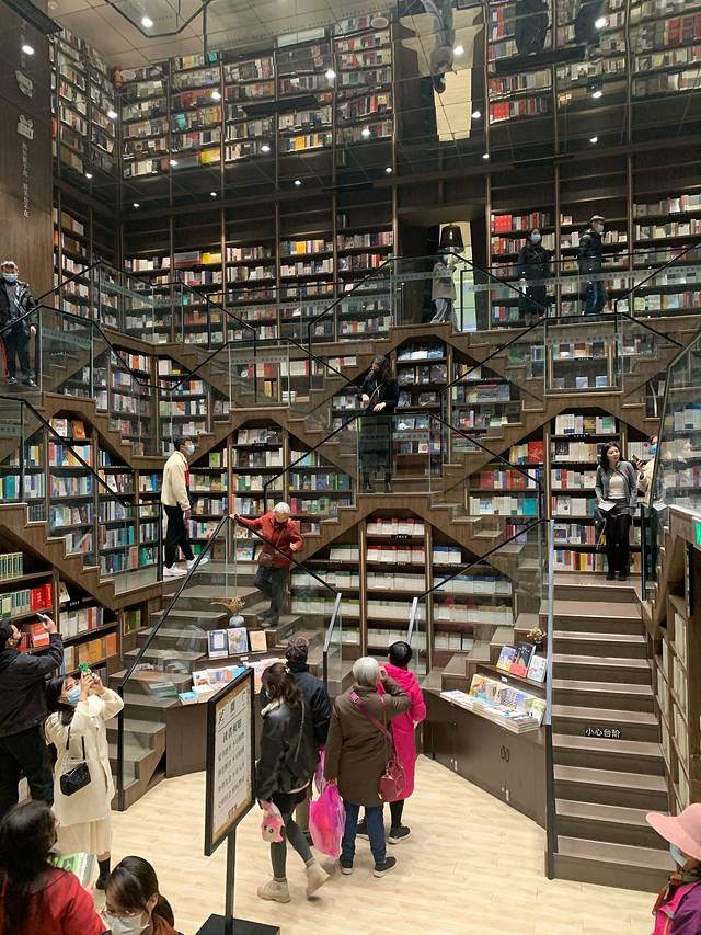 湖广两会出来后直接去打卡了钟书阁,钟书阁主要是天花板也是镜面,倒影就显得很迷宫,不过钟书阁所在的中迪广场有些破败了,书店打卡拍照还是不错的。