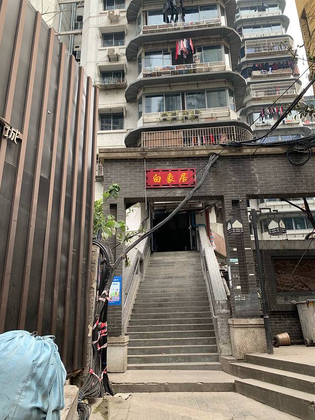 白象居位置也比较好找,看到这个门之后,直接上楼就可以看到1单元到5单元,3单元可以看到隐秘的角落拍摄点。整栋楼很神奇,24层却没有电梯。也可以看到长江索道来回穿梭已经重庆地标来福士