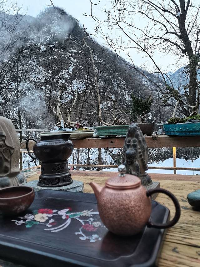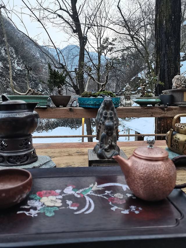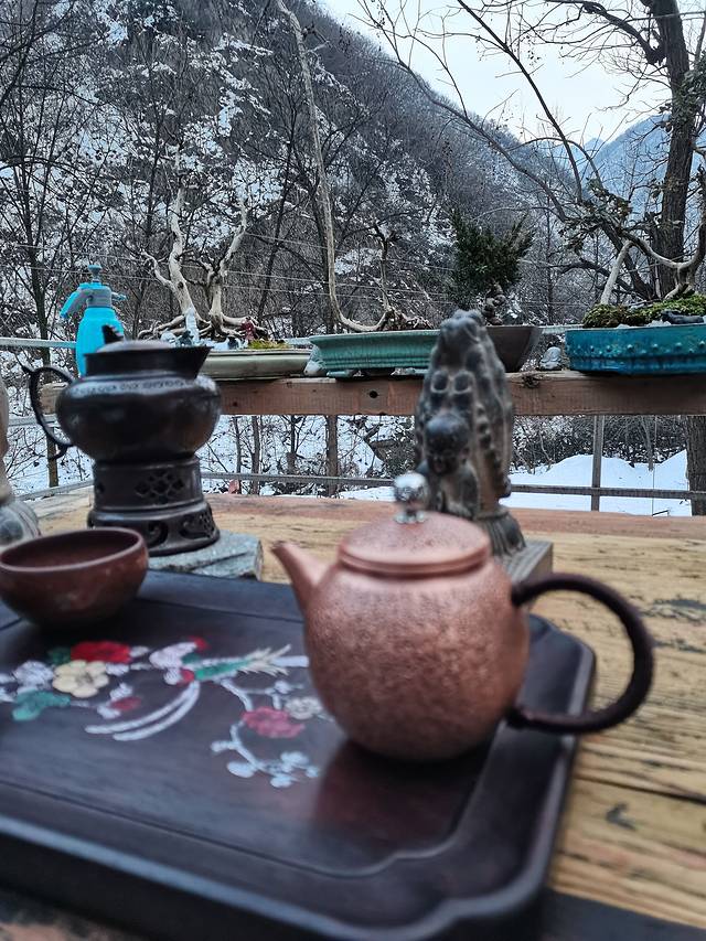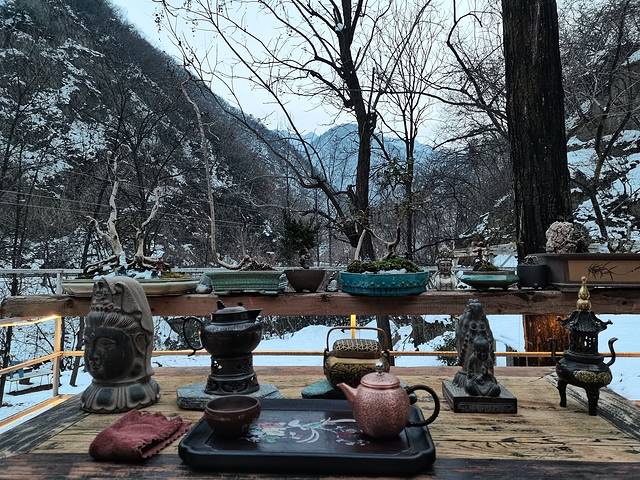 来秦岭终南山耿峪 红梅树农家乐(导航搜索红梅树农家乐) 茶宿,真正的依山傍水,山环水绕,独家独户独院,环境幽静而不受烦扰。进山不收任何费用,才4公里高大上的水泥硬化路面就到了,不费油[大笑],停车免费。茶宿每面墙是12平米一整块双层夹胶断桥铝落地窗,风景通透,光线明朗,毫无阻隔连接室外秦岭风景——我们不做秦岭风景的制造者,只做终南山旖旎风光的搬运工。30多平米的山景房,室内配备的一把茶壶是三百二十,一个石茶盘是三百八十,一张老榆木茶桌八百,配备了全自动的马桶和语音控制的窗帘,室外还有十平米的独有私密的木平台,可以聊天,也可以搭建户外帐篷(免费提供帐篷)这个配置,对应的三百三这个价格,你品,你细品,你再品[呲牙][呲牙][呲牙]是真的民宿的配置,农家乐的收费。