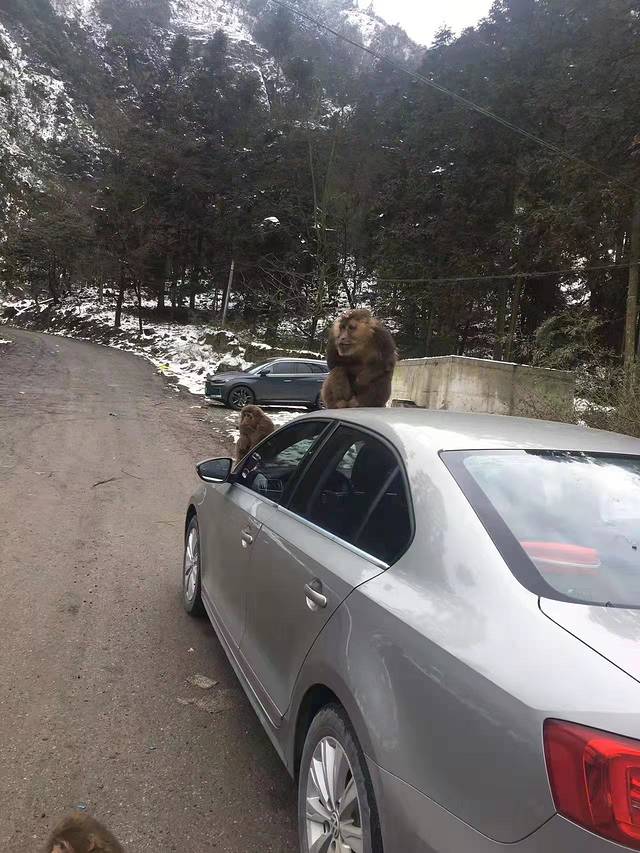 8:30到达山门,车停山门口,未收费。山上的猴群白天聚集在山门停车场,会抢游客的食物。我比较害怕会挠人咬人的灵长类动物,所有吃食全部装进背包,绝不逗猴子,被抓可要打破伤风了。山门有简陋的收费厕所,有小吃摊,也有简单的玩雪玩具售卖。