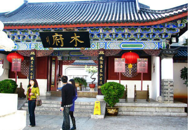 木府:1723 年清朝改土归流前纳西族土司木氏的王府,称得上是小型故宫。徐霞客曾叹曰:“ 宫室之丽,拟于王者”。可见古时木府的气派。现在的木府是 1996 年大地震后,世界银行贷巨款相助,经三年努力重建的。《木府风云》就在这里拍摄的,这将是来丽江的一个新理由。从古城四方街顺七一街向东步行大约 200 米遇见右侧的关门口牌坊,进入关门口直行 100 米就是木府,门票 60 元。