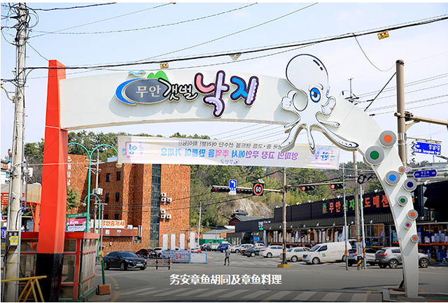在务安邑巴士客运站周边分布着约30多家店铺,这就是著名的章鱼胡同,游客们可以在这些小店内品尝到凉拌生章鱼、清章鱼汤、排骨章鱼汤等多种多样的章鱼料理。