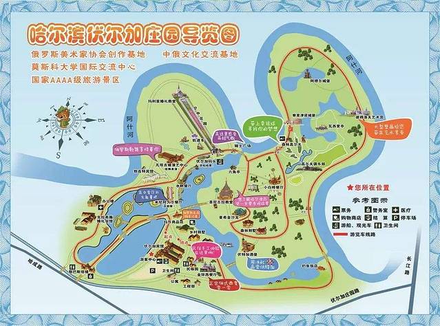在太阳岛里面有游览电车和出租的自行车,不太便宜但是还建议不要步行,不然一天游览不完。里面不光有俄罗斯风情小镇(需要另外购票)