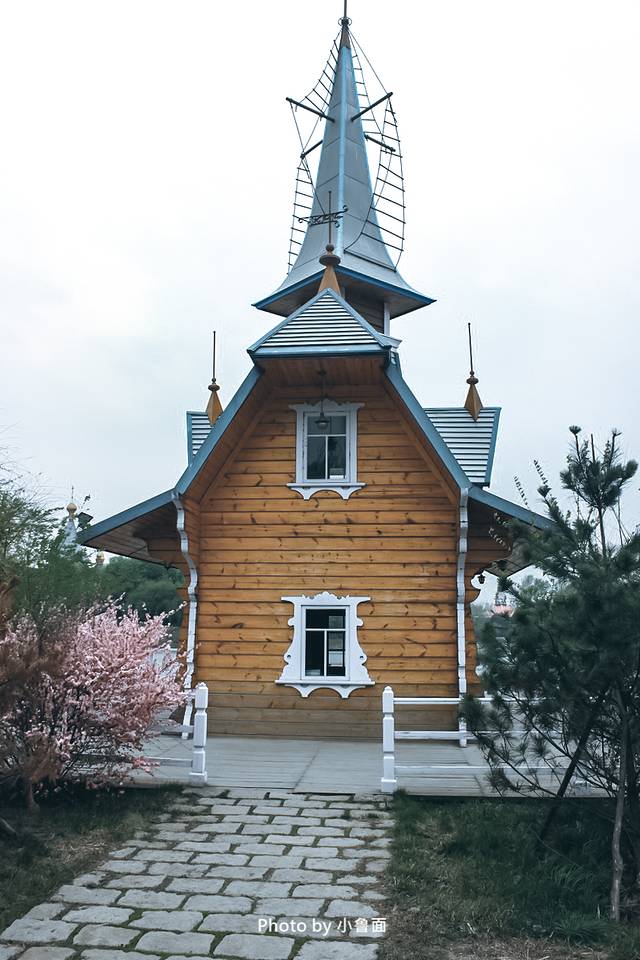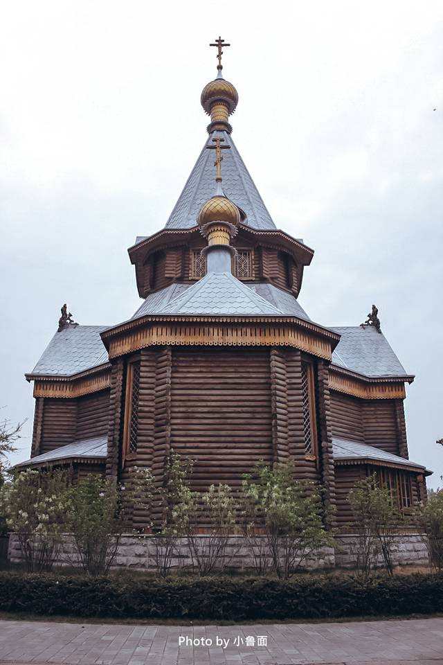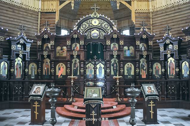 新的尼古拉教堂完全是按原样原大小原工艺复制的,原木是从俄罗斯进口的,请俄罗斯的著名建筑师指导,整个教堂没有一只铁钉,完全是榫卯结构的,内部也是按原样复制。