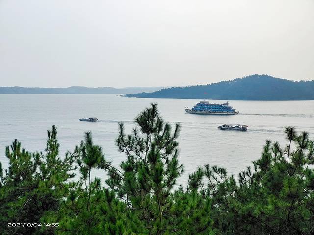 下午两点来到丹江大观苑。丹江大观苑位于河南省南阳市淅川县,依托人工淡水水库、南水北调中线工程水源——丹江口水库。丹江大观苑是丹江口水库周边自然景观最丰富的区域。景区从西向东有多个岛,依次为情人岛、凤凰岛、龟岛、鹿岛及鹤岛。其中情人岛伸入水中最远,与龟岛形成一个半环状的天然港湾。苑区依山旁水,山水相连,是镶嵌于丹江湖畔的一颗璀璨明珠。景区门票98元,60岁以上老年人免门票。景区很大,在景区要乘坐观光车,车票一人30元。