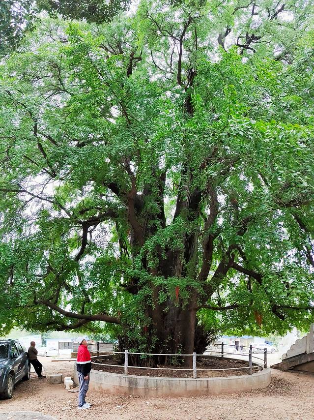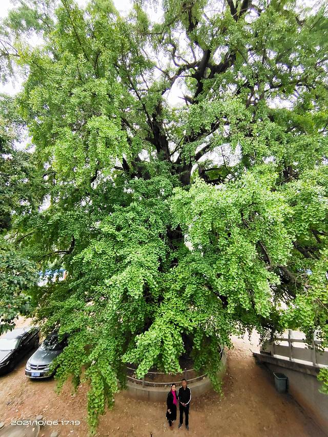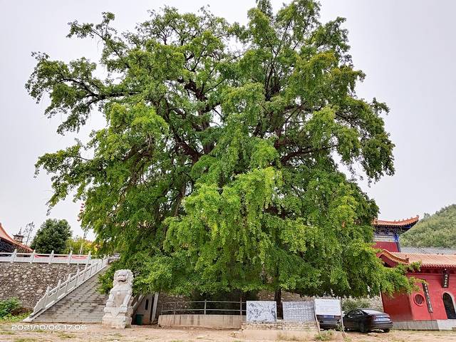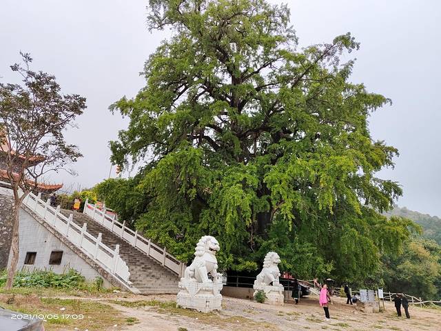 下午五点来到桐柏县淮源镇鸿仪河村北4公里的清泉寺,这里屹立着一棵气魄雄伟的古银杏树。这棵古银杏树枝桠纵横交错沧桑上千年,且不减青春风貌,每年都会吸引众多游客慕名而来。相传此树植于汉代,距今已有2000多年历史,被当地人称为“千年白果王(银杏王)”。由于时间早了点,银杏叶子还没有变黄,还没有到最佳的观赏时间。
