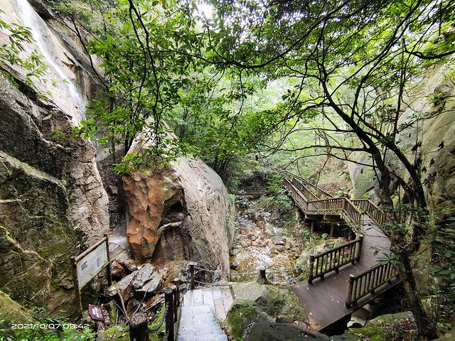 桐柏山淮源风景名胜区是国家AAAA级旅游区。位于豫鄂交界的桐柏山脉中段,是古"四渎"之一淮河的发源地和江淮两大水系的天然分界线。景区非常大,分为淮源、桃花洞、太白顶、水帘洞四大各具特色的区域。有豫南第一高峰海拔1140米的太白顶,河南四大名寺之一的水帘寺,险幽神秘的淮河源等以及新开发的三条黄金旅游线路,通天河《西游记》文化游、盘古溪生态游、情人谷休闲避暑游等各类景观。我们去的时候,景区只有水帘洞景区开放,因此,只游玩了水帘洞景区。景区门票60元,观光车10元,60岁以上老年人免门票。我们在景区游玩了五个多小时。