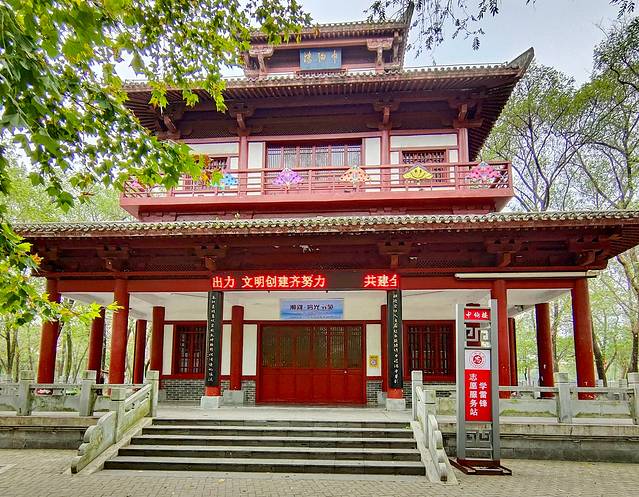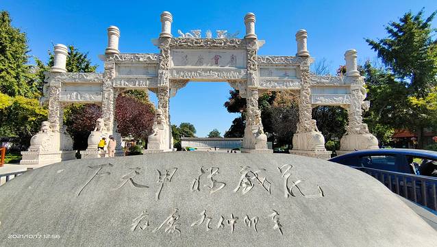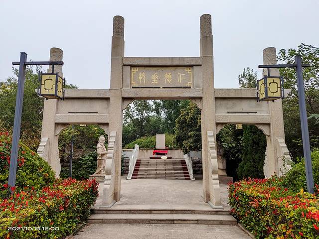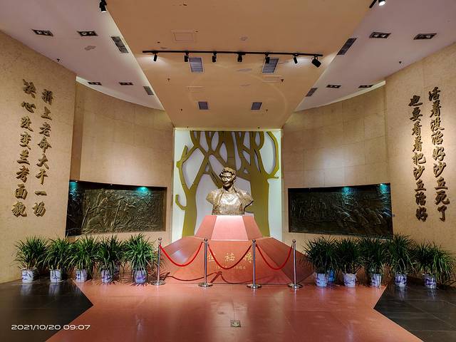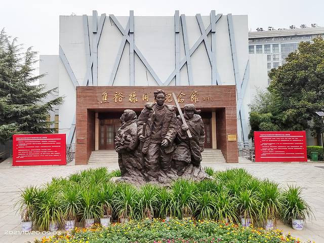 中午十二点半来到驻马店杨靖宇将军纪念馆。著名抗日民族英雄杨靖宇(1905--1940年),驻马店确山县李湾村人。原姓马,名尚德。曾任东北抗日联军第一路军总司令兼政委。1940年2月于吉林省蒙江县被日寇包围,因寡不敌众,壮烈殉国。杨靖宇将军纪念馆位于驻马店市区白桥路与靖宇大道交会处东南侧,占地150亩,分为杨靖宇将军纪念馆、纪念公园和故居三个部分。其中,杨靖宇将军纪念馆占地70亩,展现杨靖宇将军波澜壮阔、恢宏壮烈的一生。杨靖宇将军纪念公园占地80亩,位于纪念馆的西侧。公园分为两部分,南边是确山园,北边是白山园,中间以水系相隔,水系按黄河在我国版图上的流向形状设计,寓意杨靖宇将军从家乡跨过黄河、越过长城,在白山黑水间抗日杀敌的历程。由于纪念馆没有开门,只能在门口看看。