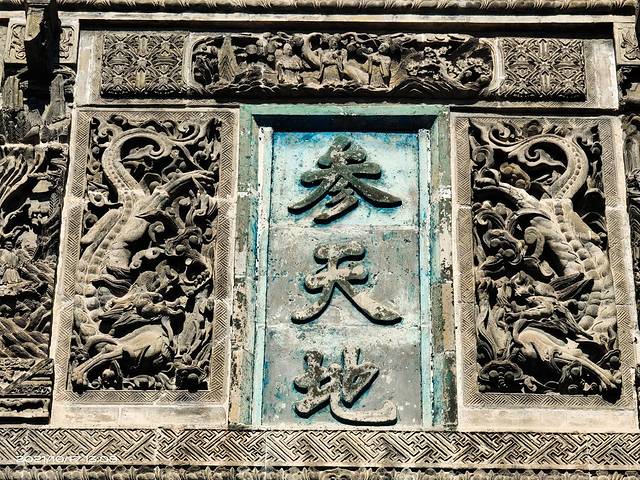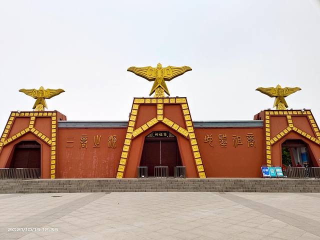 商祖祠三商之门,是采用3个变形的甲骨文“商”字作为基本造型而设计的,门顶雕以玄鸟,寓意为“玄鸟生商”。3个“商”字形的门相连,寓意为商部族之源,商人、商业之源,商朝最早的建都地。基调颜色为红色,既有火的发源地之意,也象征着红红火火发达的商业。