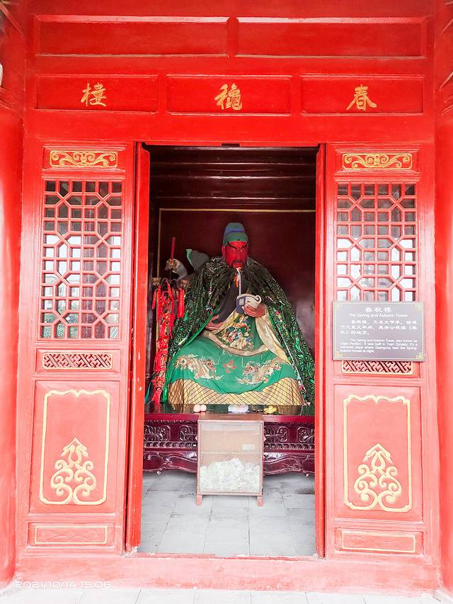 许昌春秋楼景区位于许昌中心,文庙前街中段,地理位置优越,交通极为便利,是一处明清风格的古建筑群,属河南省重点文物保护单位,国家3A级旅游景区。东汉建安五年,曹操东征,下邳之战俘获关羽及刘备甘、糜二位夫人,为保护皇嫂安全,关羽“土山三约”之后暂且归附曹操,来到许昌。曹操宠才爱将,遂拜关羽为偏将军,并赐府宅一处,让关羽和二位皇嫂同住,关羽为避嫌,将一宅分为两院,让二位皇嫂住内院,自己住外院,院中有一楼,关羽在此秉烛达旦,夜读《春秋》,春秋楼由此而得名。