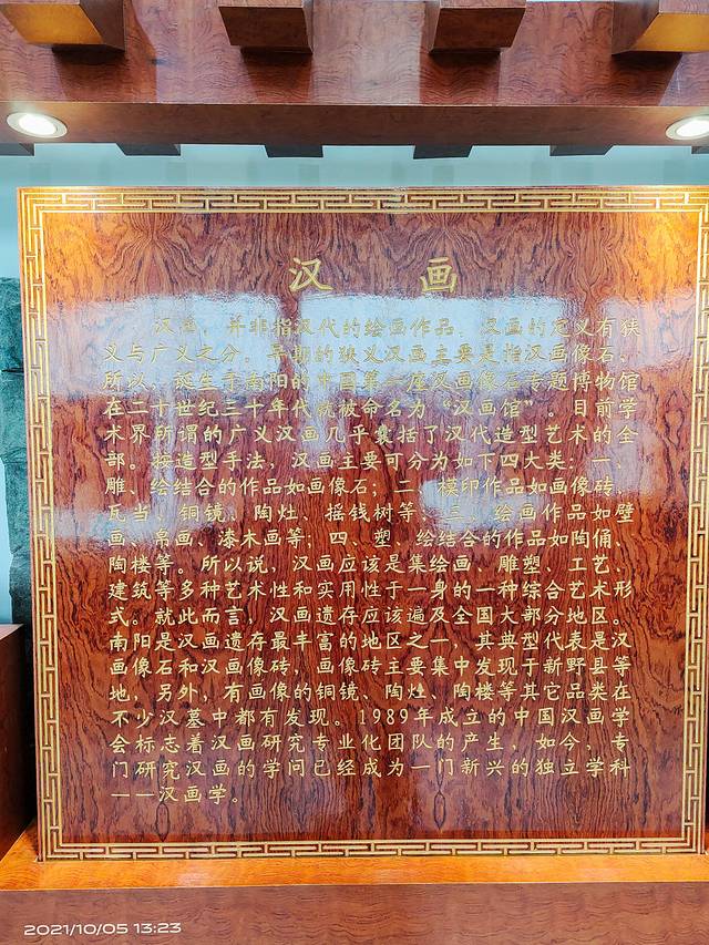 南阳汉画馆是中国第一座专门收藏、陈列、研究汉代画像石刻的艺术博物馆,创建于1935年10月10日。现在收藏汉画像石总量达两千余石,成为中国建馆历史最早、规模最大、藏品数量最多的一座汉代艺术博物馆,对外免费开放。