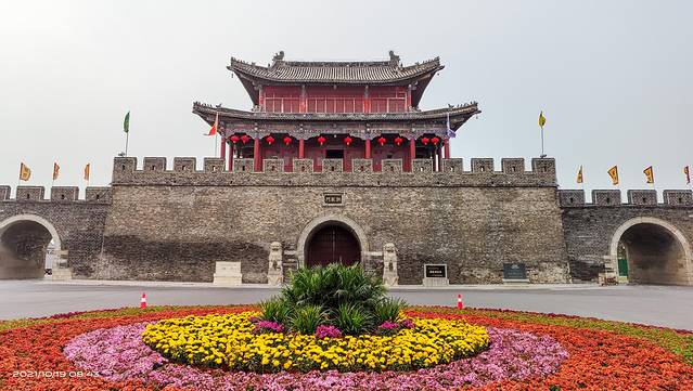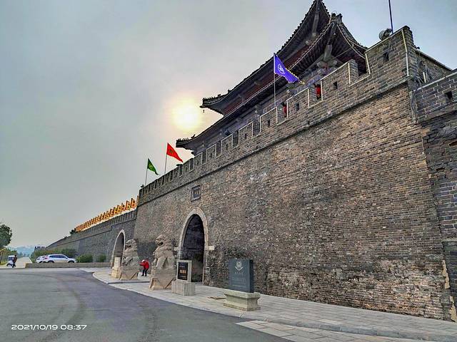 商丘古城位于河南省商丘市睢阳区,是国家历史文化名城、全国重点文物保护单位、国家AAAA级旅游景区、国家水利风景区。它是世界上唯一一座集八卦城、水中城、城摞城三位一体的大型古城遗址。商丘古城,外圆内方,犹如一枚巨大的方孔圆钱,寓天圆地方,天地相生,招财进宝之意。古城内的四合院鳞次栉比,93条街道把全城分割成200米见方的许多小块,格局如同棋盘。现存商丘古城距今已有500余年历史,虽然历经战乱,但保存得基本完好,为全国少见的古城遗存。由于年代久远,兵祸天灾,古城曾多次被毁,又多次重建,但范围都在南北十里之内。城门为拱券式,至今保存完好。东门曰宾阳,西门曰垤泽,南门曰拱阳,北门曰拱辰。四门外原有四个瓮城,瓮城又各有一个扭头城门,北门向西,东门和西门向南,南门向东,所以,商丘古城古有“四门八开”之说。