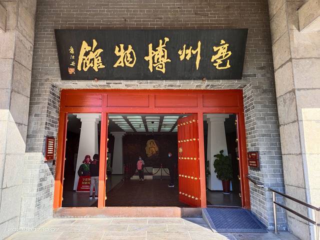 亳州博物馆就在曹操公园旁边,为仿汉城堡式建筑,为综合性博物馆,馆名于1963年由时任中国科学院院长郭沫若题写。博物馆总占地面积2.5万平方米,室内陈列面积2800平方米。馆藏文物2687余件。亳州博物馆一层主展馆的陈列主题:《穿越五千年---亳州文化寻源》,按照历史发展的脉络,展示亳州博大精深的文化魅力和多姿多彩的文物形态。展览由序厅、涡河文明、商汤都亳、道源圣地、汉魏风骨、天下望州、亳商市井、近代和当代亳州8个部分组成,展出文物810件套。亳州博物馆是亳州城市的名片、文化的芯片、历史的底片。