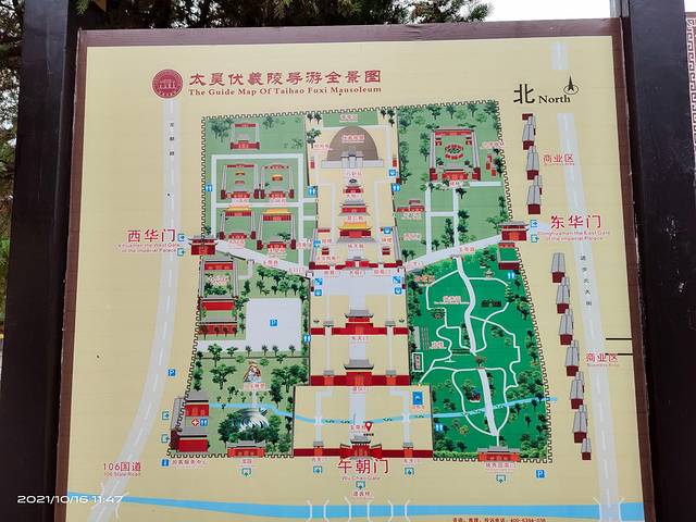 太昊陵位于淮阳县城北1.5公里,国家级重点文物保护单位,国家AAAA级景区,位居中国十八大名陵之首,有“天下第一陵”之誉。“中华文明三始祖,淮阳伏羲第一人”。太昊伏羲氏是中国远古神话传说中的一个圣明帝王。传说伏羲氏建都于宛丘,死后葬于陈。史载,太昊陵春秋时已有陵,汉以前有祠,唐宋时期不断扩建并形成规模。现存陵制及建筑是明太祖朱元璋颁诏修建的,后经明、清两代的多次整修和重修,占地875亩,分内城、外城、紫禁城三道“皇城”。规模宏大,肃穆庄严,始建于春秋,增制于盛唐,完善于明清,岁月3000年,历代帝王52次御祭。
