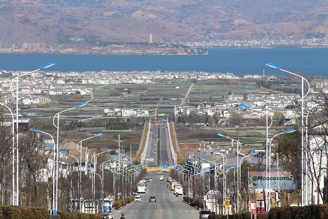 环完洱海,就回市区了,推荐两个机位,一个是能拍到苍山+成群的白族建筑的机位,我是隔着挡风玻璃拍的,路过时看到了就顺手拍了;另一个是大理大学前的马路,往下看就是洱海。