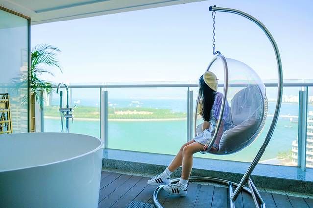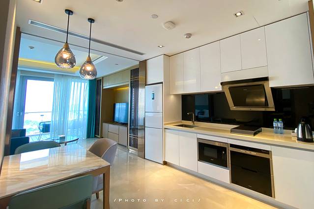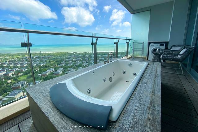 因为是公寓式的酒店,房间比普通酒店式的还要大。一房的价格享两房的空间和舒适;配有欧式厨房及设施,让度假可以像家里一样随意舒适。我们住在15楼,无敌的海景阳台,还有一个面朝大海的按摩浴缸,自己在房间里就能坐拥一片海景。
