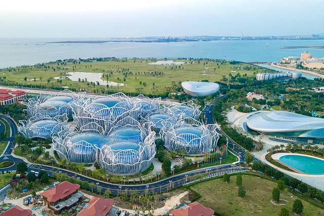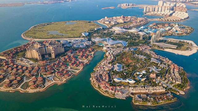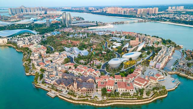 白日里,坐着免费的接驳车,在1号岛上打卡好看的建筑,去商业街吃世界各地,五湖四海的美食;