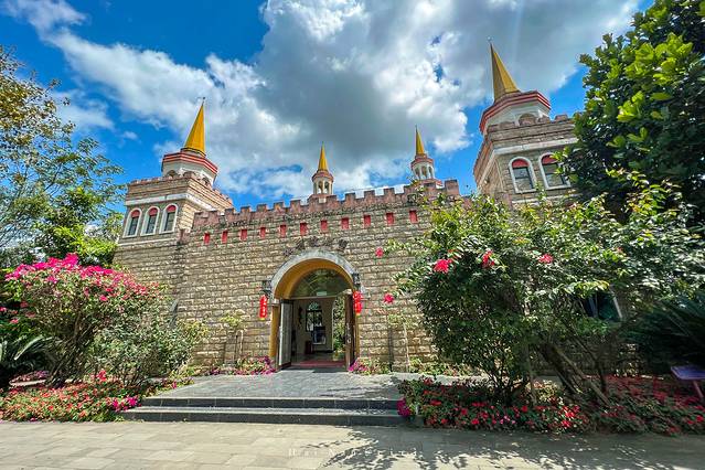入口处便是一座童话感十足的城门,进入城门往里走,一眼看到的便是壮丽的加利坡城堡,其实城堡是咖啡驿站,在这里可以喝一个欧洲庄园般的下午茶;