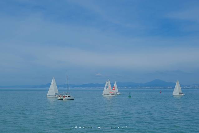 辽阔的海平面晶莹如镜,蔚蓝的大海里倒影着天空里的朵朵白云,安排一次帆船出海游,想象自己像海贼王一样,在大海上自由驰骋。