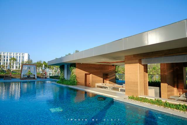 但室内像家,室外配套就像是酒店了,1800平米的户外泳池、特色民俗演艺,配上三亚的椰海白沙、高天流云,一切是那么的令人心旷神怡!