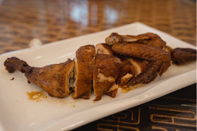 老汁鸡是到季市必点的小吃之一,取百味而成一汁,讲究“十步闻香”,老汁的年代越久越香,所制的老汁鸡就越名贵。将鸡漫没在老汁里,用文火慢烟,这样做出来的老汁鸡,入味很深,回味无穷。完全煮入味的老汁鸡色泽红润、里面混合着麻油和猪油的香味,鸡肉入口即化,比起切得整整齐齐装盘,撕碎了吃更是过瘾!