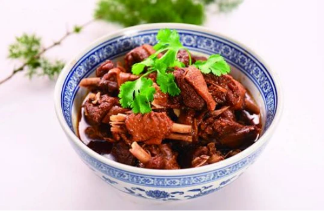 敦义港红烧老鹅特色在一个“老”字上,选材是散养一年以上的老鹅,烹饪用土灶铁锅的老灶,佐料配菜都是乡间土产,鹅肉油光雪亮,汤汁浓郁鲜透。
