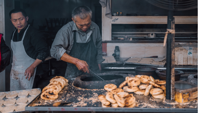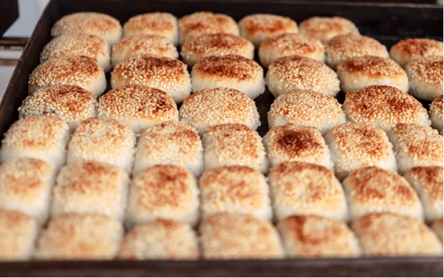 来季市一定要尝尝大炉饼,走在老街上,远远就能闻到巷子口散发出大炉饼的芝麻香。大炉饼口味大致分为甜咸两类,咸的葱花飘香,油而不腻,甜的豆沙细软,糯而爽口。饼外有满满一层芝麻,焦香的酥皮包裹着软糯的豆沙。一只手小心拿在手中,一口咬下,满口酥香,油而不腻,只想一口接着一口。另一只手在最下方接着,那掉落的细碎芝麻和酥皮,再捧到嘴边,一口吃下,超满足!