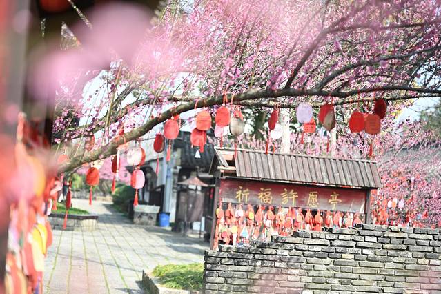 像许多古镇一样,梅花洲的建筑全都枕河而建,五瓣陆地藉桥梁通行往来,很有江南特色。可以沿街走走,逛逛路边的宅子,悠闲惬意。