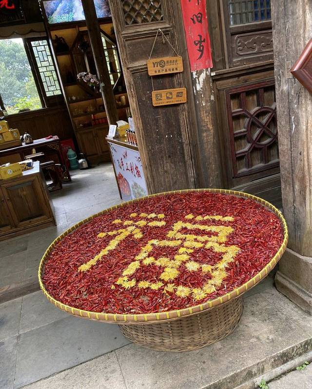 整个篁岭景区的范围并不大,挑选性的逛完大约只需花费两到三小时时间,景区内有详细的导览指引,按照指示方向轻松游玩,天街、水街、晒秋人家、水口森林各具特色,步步皆景,当然重头戏还是晒秋人家和晒工坊,白墙黑瓦中铺陈晒满火红的辣椒、金黄的玉米、橘黄的南瓜、各色菊花,墙角屋檐偶然遇见红澄澄的大柿子,富有层次的晒秋美景,别具一格又浑然一体。